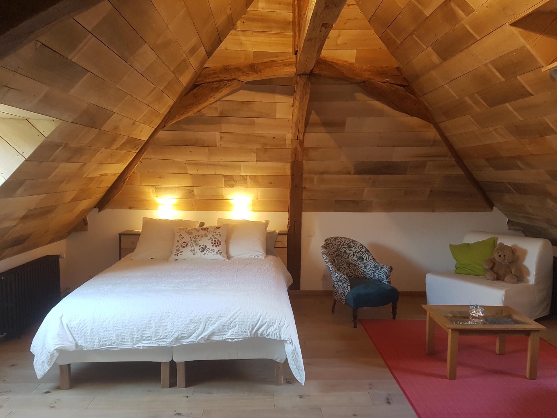 Dans le Moulin, "Le Doublier": pour dormir sous la charpente de chêne et les voliges de peuplier.